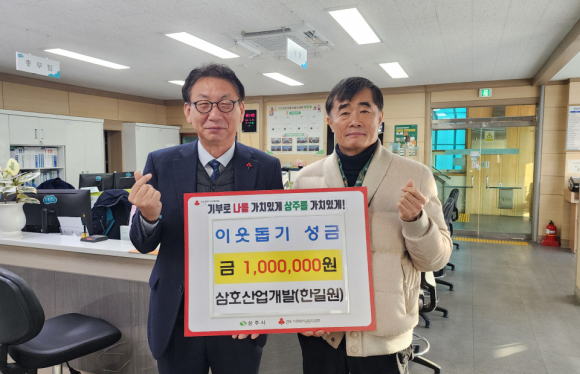 상주 소재 삼호산업개발 한길원 대표가 최근 북문동을 찾아 관내 어려운 이웃에 써달라며 성금 100만 원을 한성섭 동장에게 기탁했다.