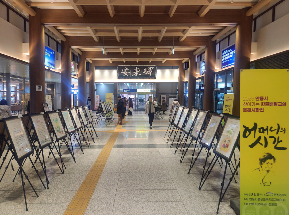 | 안동시가 성인문해교육 학습자들의 배움의 결실을 시민과 공유하기 위해 성인문해교육 시화전 ‘어머니의 시간’ 2차 전시를 지난 15일~오는 2월 7일까지 KTX 안동역 로비에서 개최한다.
