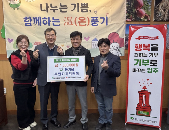 풍기읍 주민자치위가 지난 16일, 읍 행정복지센터를 방문해 풍기읍 지역사회보장협의체에 성금 100만 원을 기탁했다.