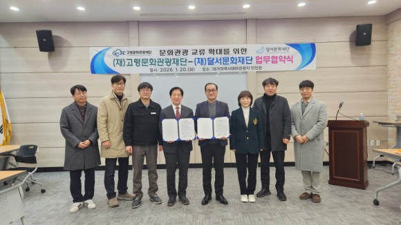 (재)고령문화관광재단(대표이사 이승익)과 (재)달서문화재단(대표이사 박병구)이 지난 20일 고령군 소재 대가야역사테마관광지 인빈관에서 두 기관 관계자들이 참석한 가운데 상호협력 확대를 위한 업무협약을 체결했다.