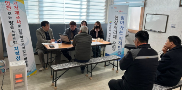 ‘찾아가는 지적민원 현장처리제’는 지적정보과를 중심으로 세정과, 종합민원과와 한국국토정보공사 영천지사가 함께 참여해 주민 생활 및 재산권과 밀접한 각종 지적·생활 민원을 마을 현장에서 접수·처리하는 현장 밀착형 행정서비스다.