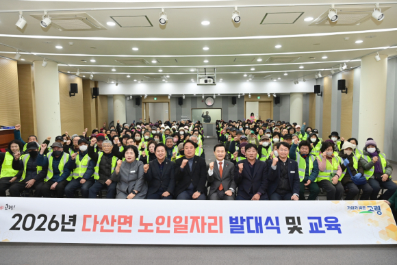 고령 다산면(면장 윤종백)이 지난 20일 면사무소 3층 강당에서 2026년 다산면 노인일자리사업 참여자 309명을 대상으로 노인일자리 발대식 및 교육을 실시했다.