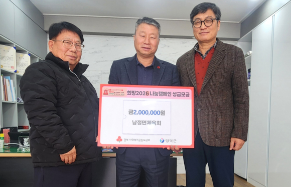 영덕 남정면체육회가 지난 20일 면 행복소통실을 찾아 ‘희망2026 나눔 캠페인’성금 200만 원을 기탁했다.