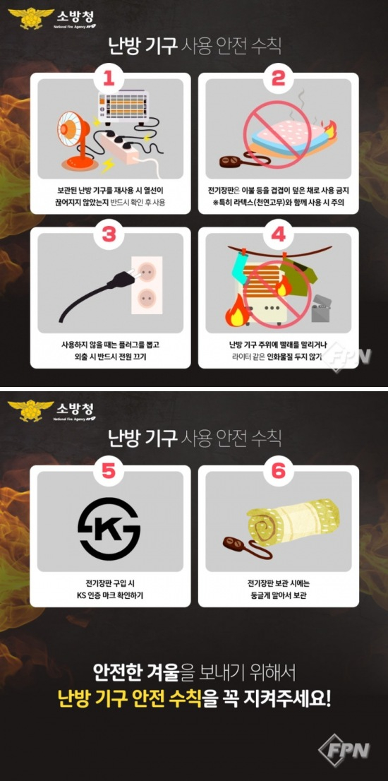 최근 한파특보 발효 등으로 기온이 급격히 낮아지면서 난방기기와 전열기기 사용이 늘고 있다. 이 시기에는 전기히터, 열선, 전기장판 등 난방기기 사용 부주의와 노후 전기설비로 인한 화재 발생 위험이 특히 높아 시민의 각별한 주의가 요구된다.