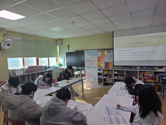 | 2026 문경Wee센터 겨울방학 잇다프로그램 운영 모습.<문경교육지원청 제공> | 문경교육지원청이 22일, 관내 지역아동센터에서 초4학년~중3 학생들을 대상으로 겨울방학 잇다(ITDA) 프로그램을 실시했다.