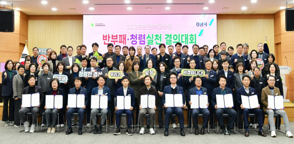 경산시가 지난 23일 시청 대회의실에서 ‘2026년 간부 공무원 반부패·청렴실천 결의대회’를 개최했다.