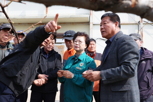 | ↑↑ 저온피해 배 농가 방문 모습. |