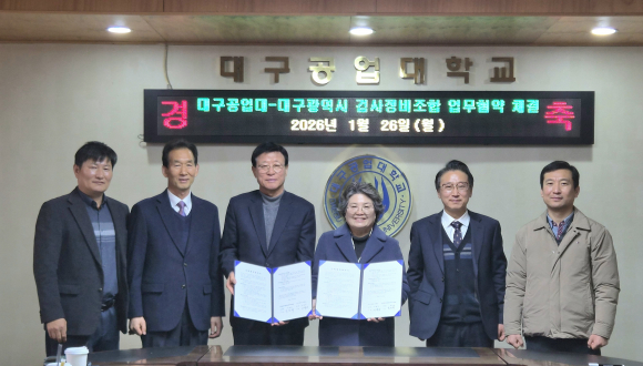 대구공업대와 대구시자동차검사정비사업조합이 지난 26일 대구공업대학교 1호관 2층 세미나실에서 산학협력 업무협약(MOU)을 체결했다.