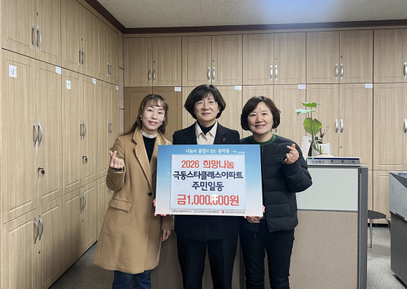 지난 26일, 송하동 소재 극동스타클래스 아파트 주민 일동이 이웃돕기 성금 100만 원을 전달하며 나눔의 포문을 열었다. 전달식에는 주민을 대표해 권경순, 오말숙 통장이 참석해 입주민들이 한뜻으로 모은 소중한 정성을 기탁했다.