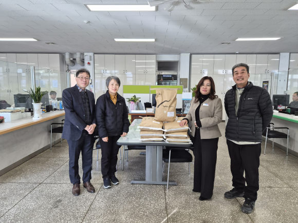 문경 가은읍 소재 희양산마을영농조합법인이 지난 27일 2025년도 출산한 7가구가 안심하고 먹을 수 친환경 쌀 10kg 7포를 전달했다.