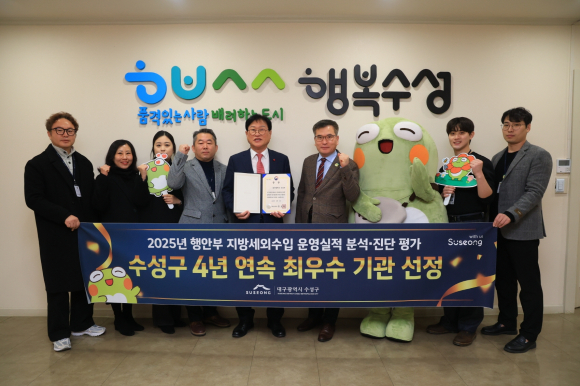 대구 수성구가 행정안전부가 주관한 ‘2025년 지방세외수입 운영실적 분석 진단’ 평가에서 최우수 기관으로 4년 연속 선정됐다.
