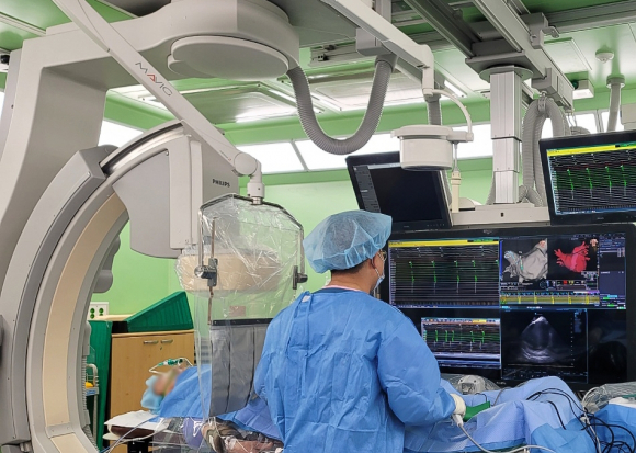 | ↑↑ 영남대병원 심장내과 이찬희 교수가 고난도 신의료기술인 ‘제로 방사선 펄스장 절제술'을 성공적으로 시행하고 있다. 영남대병원 제공 |