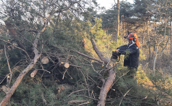 | 소나무재선충병 피해목 처리 모습.<영주시 제공> | 영주시가 소나무재선충병의 확산을 막고 건강한 산림을 지키기 위해 4월까지 집중 방제에 나선다. 소나무재선충병은 매개충인 솔수염하늘소와 북방수염하늘소를 통해 전파되며, 한번 감염되면 소나무류(소나무, 잣나무 등)가 단기간에 100% 고사하는 치명적인 병이다. 최근 지구온난화 등 기후변화로 매개충이 활동하기 좋은 환경이 조성되면서 소나무재선충병 확산 속도도 빨라지고 있다. 이에 시는 약 20억 원 예산을 투입해 매개충 활동기 이전인 4월 말까지 감염목 및 감염 우려목 약 1만 6천여 본을 집중 방제할 계획이다. 또한 소나무재선충병 확산을 차단하기 위한 국가 방어선 지역인 소백산으로 유입되지 않도록 예찰원과 방제단을 전면 배치해 정밀 예찰활동도 강화할 예정이다. 우정필 산림과장은 “소나무재선충병은 한번의 방심이 돌이킬 수 없는 산림훼손으로 이어지는 만큼, 예산을 적기에 투입해 방제 작업을 철저히 추진하겠다”고 말했다. 아울러 “주변에서 붉게 시든 소나무를 발견하면 즉시 신고해 주고, 토지 소유주는 감염목 및 감염우려목 방제사업에 적극 협조해 주길 바란다”고 당부했다. |