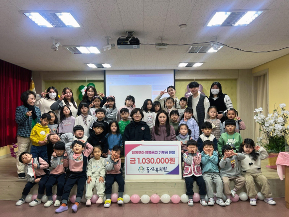 이번 기부금은 학부모와 교사, 유아, 지역 주민이 참여한 ‘동산 플리마켓’을 통해 물건을 판매한 수익금과, 아이들이 직접 만들어 판매한 ‘붕어빵 기부 챌린지’수익금을 합산해 마련됐다. 특히 작년에 이어 올해도 이어진 나눔 활동이라는 점에서 그 의미를 더했다.