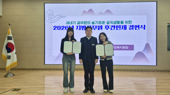 예천교육지원청이 지난 3일 청내 대회의실에서 2026년 신규 및 저연차 공무원과 선배공무원 8명이 참석한 가운데 지방공무원 후견인제 결연식을 개최했다.