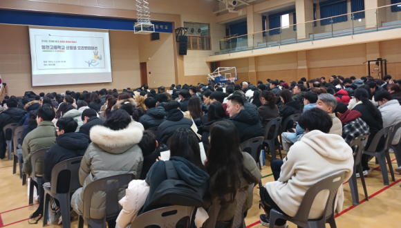 ↑↑ 전국 최초로 군인자녀 공립학교로 운영되는 영천고, '2026학년도 신입생 오리엔테이션'을 하고 있다.<영천교육지원청 제공>