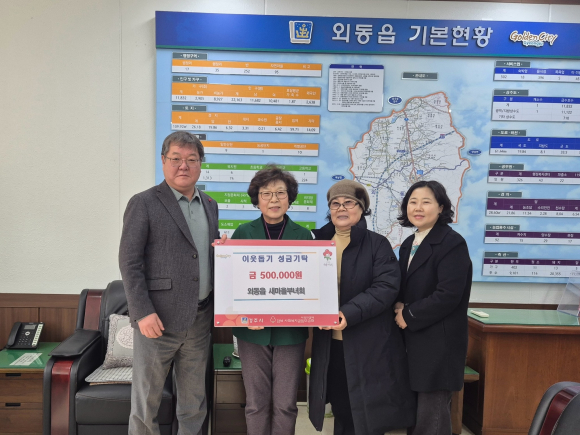 외동읍 새마을부녀회가 지난 1월 29일 외동읍 행정복지센터를 방문하여 취약계층을 위한 성금 50만 원을 후원했다.