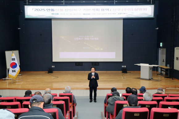 | 안동시가 지난 6일 농업기술센터 대강당에서, 지난해 발생한 산불로 훼손된 산림의 체계적인 복구 계획을 공유하고 주민과 산주 의견을 수렴하기 위한 ‘2025 안동산불 산림복구 기본계획 용역’ 주민설명회를 개최했다.