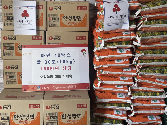 경주시불국동 시동 소재 양계농장인 오성농장에서 지난 5일 라면 10박스 및 쌀 10kg 30포를 불국동행정복지센터에 기탁했다.