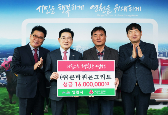 영천시에 지난 9일 ㈜큰바위콘크리트에서 어려운 이웃을 돕기 위해 성금 1,600만 원을 기탁했다.
