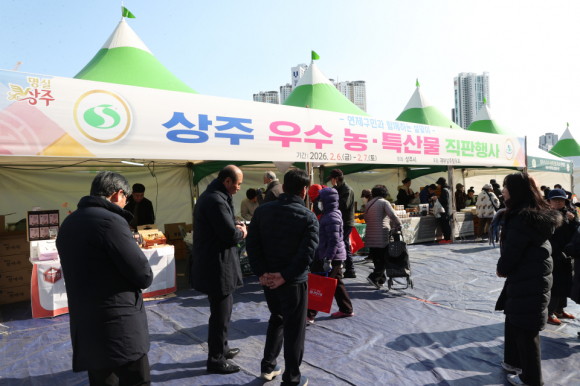| 상주시가 설맞이 지역 농·특산품 직거래장터를 지난 6일부터 2일간 자매결연도시인 부산 연제구 온천천 시민공원에서 열렸다.