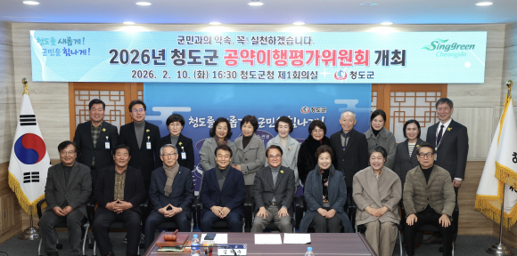 청도군이 지난 10일 군청 제1회의실에서 ‘2026년 청도군 공약이행평가위원회’를 개최하고 민선 8기 공약사항에 대한 추진 상황을 점검했다.