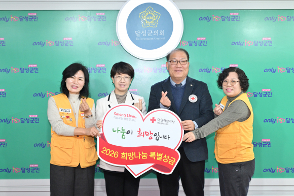 대구 달성 군의회가 지난 10일 의장실에서 대한적십자사 대구지사에 '2026년 특별성금'을 전달하며 이웃사랑 실천에 동참했다.
