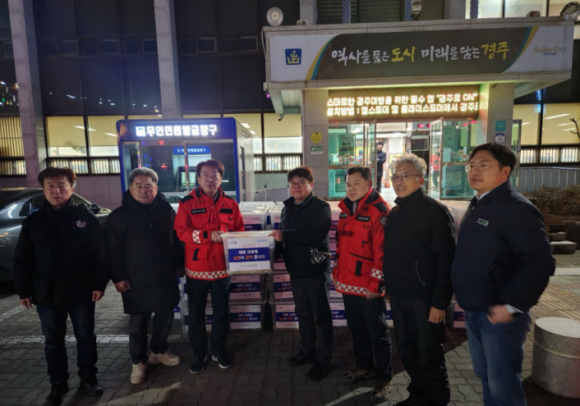 경주지부는 지난 8일 문무대왕면 행정복지센터에 마련된 재난안전대책본부와 대피소를 방문해 라면, 생수 각 200개 씩 전달했으며, 경북농협본부도 구호키트 100세트 및 간식을 전달하며 산불로 긴급 대피한 주민들과 현장 대응 인력 지원에 힘을 보탰다.