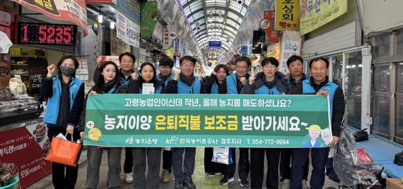 | 한국농어촌공사 경주지사가 지난 11일 성동시장 등에서 직원 20여 명이 참석한 가운데 지역 주민을 대상으로 '농지이양 은퇴직불사업'집중 홍보 활동에 나섰다.