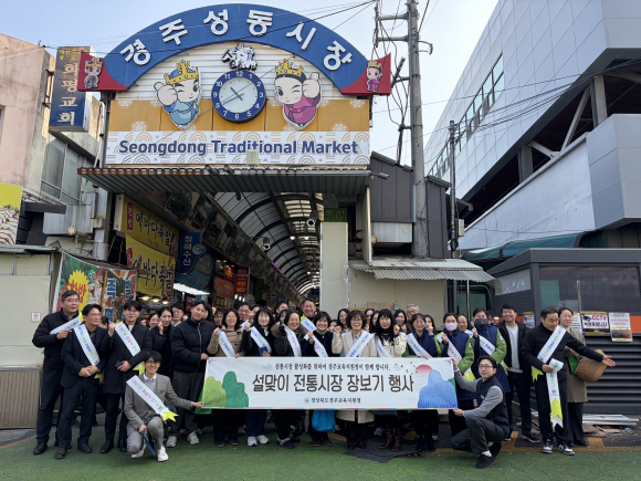 | 경주교육지원청이 지난 11일 설 명절을 맞아 경주 성동시장에서 직원 40여 명과 함께 ‘설맞이 전통시장 장보기’ 행사를 실시했다. 행사는 고물가와 소비 위축 등으로 어려움을 겪고 있는 지역 상인들에게 힘을 보태고, 지역 경제에 온기를 더하기 위해 마련됐다. 이번 행사에는 경북도 임종식 교육감, 도의원 및 학부모회가 함께해 상인과 인사를 나누고 현장의 의견을 청취하며 지역 상권 활성화에 대한 의지를 밝혔다. 설을 앞두고 장보기 행사에 참여한 직원은 지역 농·특산품과 명절 제수용품, 생필품 등을 구매하며 전통시장 이용에 적극 동참했다. 이를 통해 온라인 소비 증가 등으로 침체된 전통시장에 온기를 더하고 지역 경제 활성화에 힘을 보탰다.