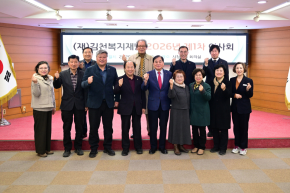 (재)김천복지재단이 지난 20일 시청 2층 회의실에서 2026년 제1차 이사회를 개최했다.
