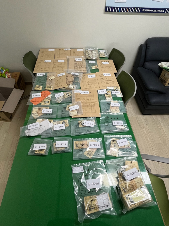 ↑↑ 압수수색으로 확보한 금품을 수수받은 조합원 명단과 현금 증거자료<사진=예천경찰서 제공>