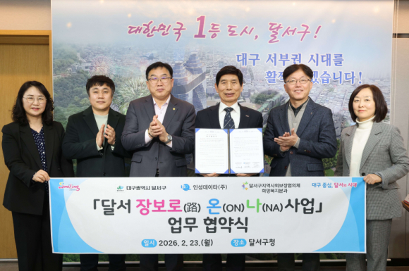 달서구가 거동이 불편한 중장년 1인 장애인 세대 등을 위한 온라인 장보기 지원사업 ‘달서 장보로(路) 온(ON) 나(NA)’를 추진한다. 구는 지난 23일 인성데이타, 달서 지역사회보장협의체 희망복지분과와 업무협약을 체결하고 대구 시민생활종합플랫폼 ‘대구로’를 활용한 생활밀착형 돌봄 서비스 제공에 나선다.