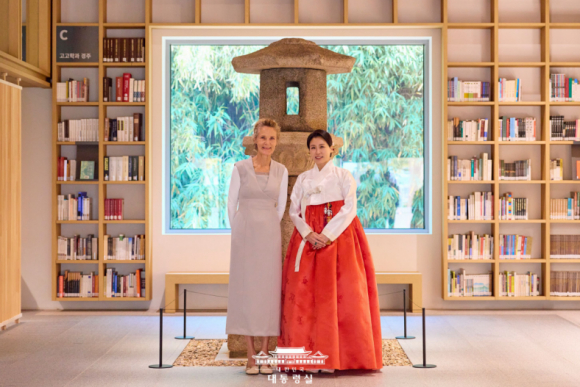 ↑↑ 캐나다 총리 부인 환담<국립경주박물관 제공>