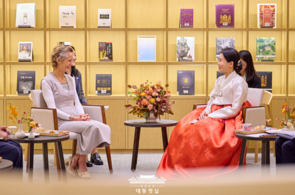 ↑↑ 캐나다 총리 부인 환담<국립경주박물관 제공>