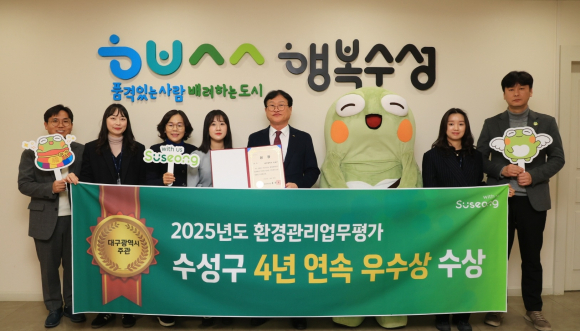 대구 수성구가 지난 24일 대구시가 주관하는 ‘2025년도 환경관리업무 평가’에서 4년 연속 우수상을 수상했다.