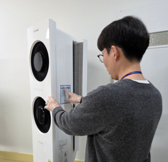 ↑↑ 신학기 대비 학교 공기청정기 관리 실태 점검 모습. 청도교육지원청 제공