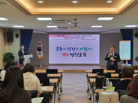 | 영천교육지원청이 지난 26일 관내 영양교사 및 영양사 30여 명을 대상으로 ‘2026년도 학교급식 기본방향 설명회 및 청렴도 향상 연수’를 개최했다.