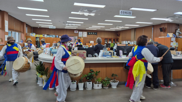 청도 각남 농악단이 지난 27일 면 사무소, 새청도농협 각남지점, 산림조합, 경로당 등을 순회하며 지신밟기 행사를 개최했다.