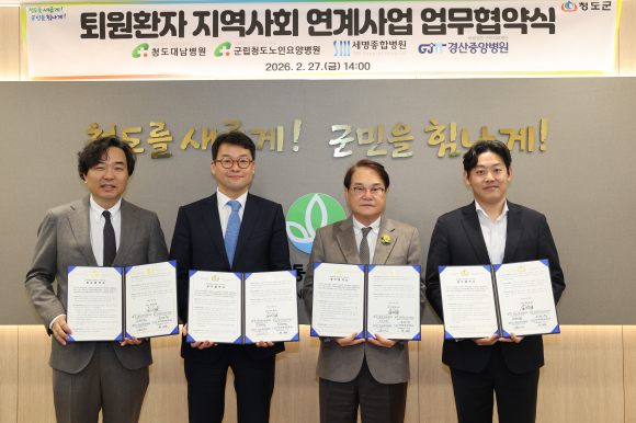 청도군이 지난 27일 관내·인근 의료기관과 ‘통합돌봄 퇴원환자 지역사회 연계사업’ 추진을 위한 업무협약을 체결했다.