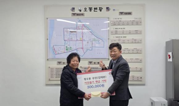 성금을 전달한 김태분 씨는 “동네 모든 이가 근심 없이 밝게 웃으며 봄을 맞이 했으면 좋겠다”고 전했다.