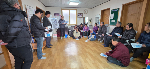 | ↑↑ 지방상수도 확장공사 주민설명회 모습.<상주시 제공> |