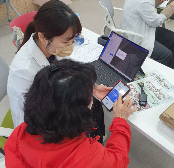 참여 어르신이 앱에 혈압, 혈당 등 건강 정보를 기록하면 보건소는 이를 실시간으로 모니터링해 확인하고 건강 상태에 맞는 상담과 건강관리 서비스를 제공한다.