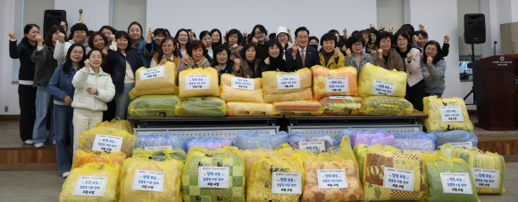 | ↑↑ 지난해 영천지역자활센터에서 추진한 행복뽀송 맞춤형 이불빨래 지원사업 후 단체 기념촬영을 하고 있는 모습<영천시 제공> |