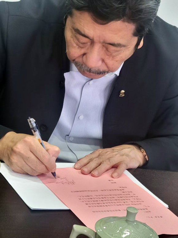 | ↑↑ 루쉰 후손의 초청장 작성 모습.<안동시 제공> |