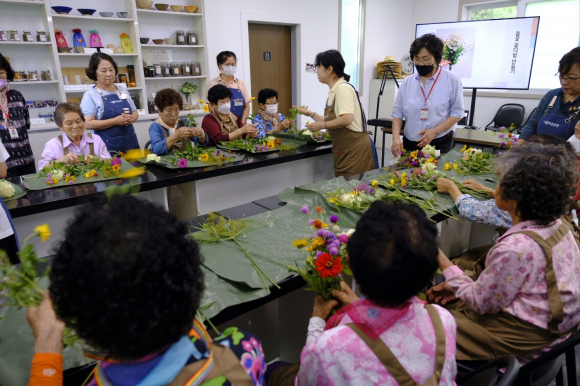 ↑↑ 민속 채소와 ‘K-허브’ 활용 치유 프로그램 운영 모습.<성주군 제공>