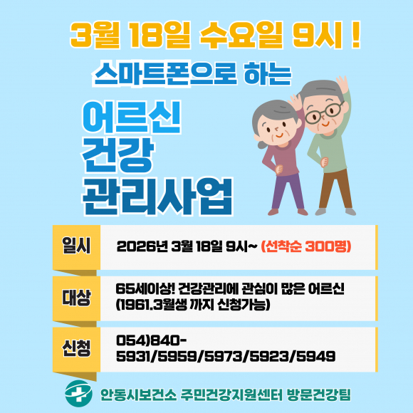 참여는 안동 보건소 주민건강지원센터 방문건강팀(054-840-5949, 5931)으로 전화하거나 방문해 신청하면 된다.