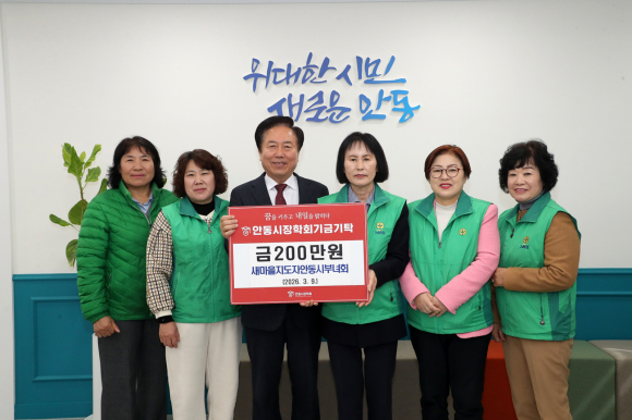 새마을지도자안동부녀회가 지난 9일 시장실을 방문해 (재)안동장학회(공동이사장 권기창, 김원)에 장학기금 200만 원을 전달했다.