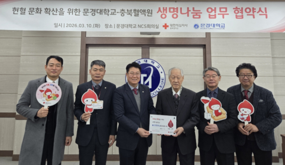 | 문경대가 지난 10일, 헌혈 문화 확산을 위해 충북혈액원과 업무협약(MOU)을 체결해 헌혈문화 확산과 생명 나눔 실천에 기여하고, 재학생 및 교직원이 참여하는 지속적인 헌혈 캠페인을 추진하기 위해 업무 협약식을 진행했다.