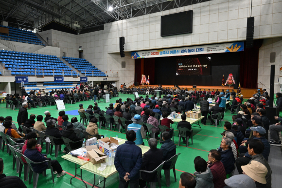 영주시가 13일 국민체육센터에서 어르신 건강 증진과 화합을 도모하기 위한 '제2회 영주시 어르신 민속놀이대회'를 개최했다